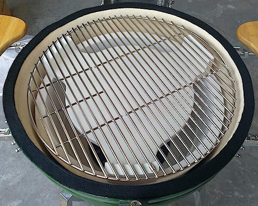 - Holds up to high heat fine,cordierite material withstands temperature over 2,000F,Easier Control temperature and smoking.The deflector plate has 3 legs and is used to deflect the heat when you do things like a pizza or chicken.