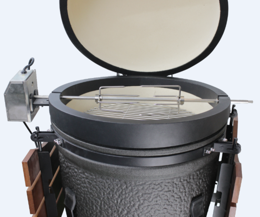 Stainless steel split rods allow for steady rotation of food to ensure foods are smoky, juicy and tender