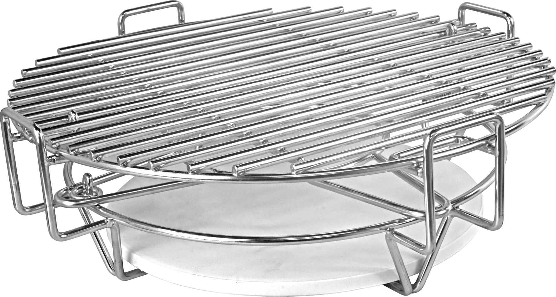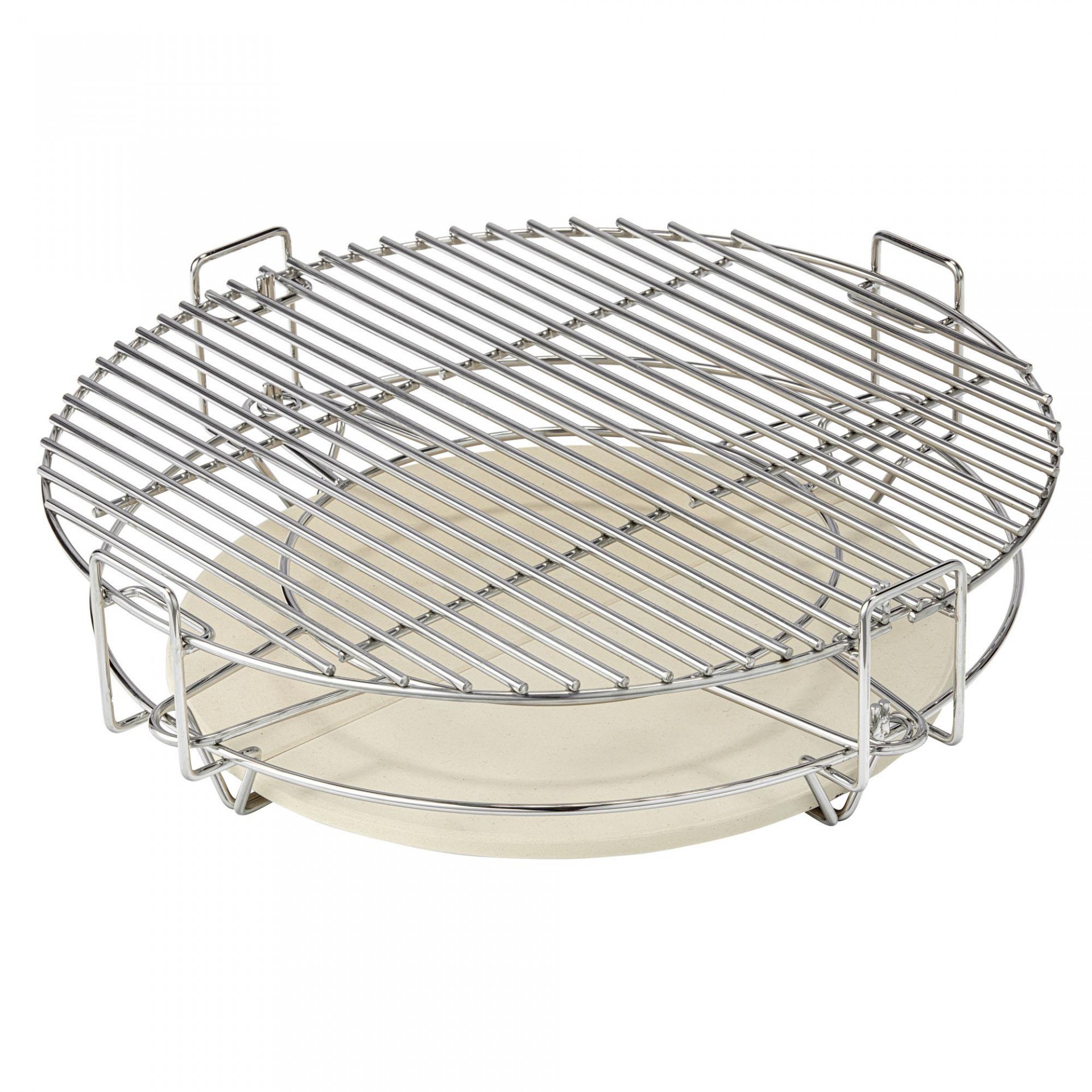 The Heat Deflector(included) allows you to creat different heat zones within the grill at the same time. For example, on one side, you install a half heat deflector on the lower level and a cooking grid on the upper level. Here youcan cook veggies with indirect heat. At the same time, on the other side, you install a half grid on the lower level to cook your meat.