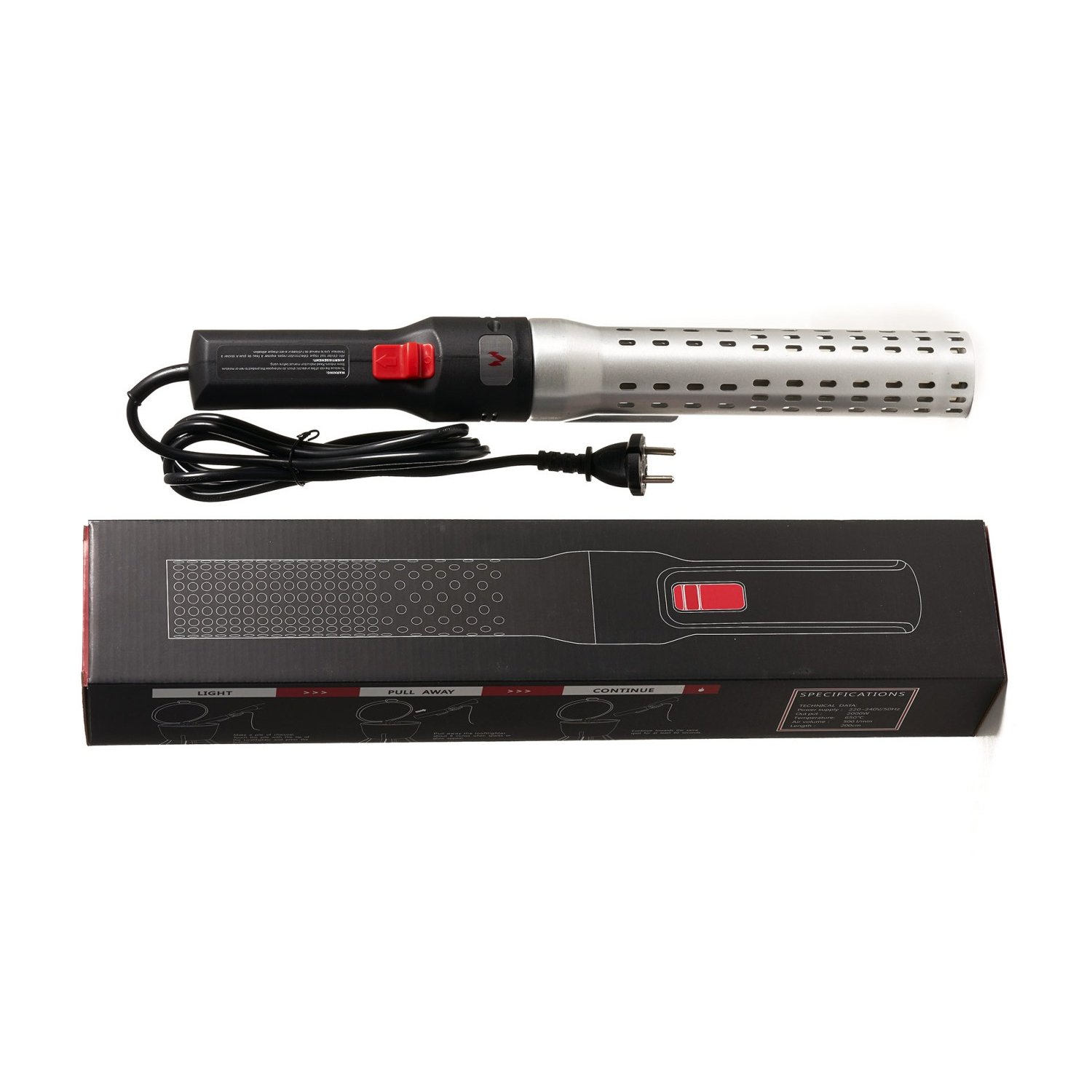 To operate, this fire starter uses a stream of heated air which will not only light your grill or fireplace but will also make the charcoal or pellets ignite faster.